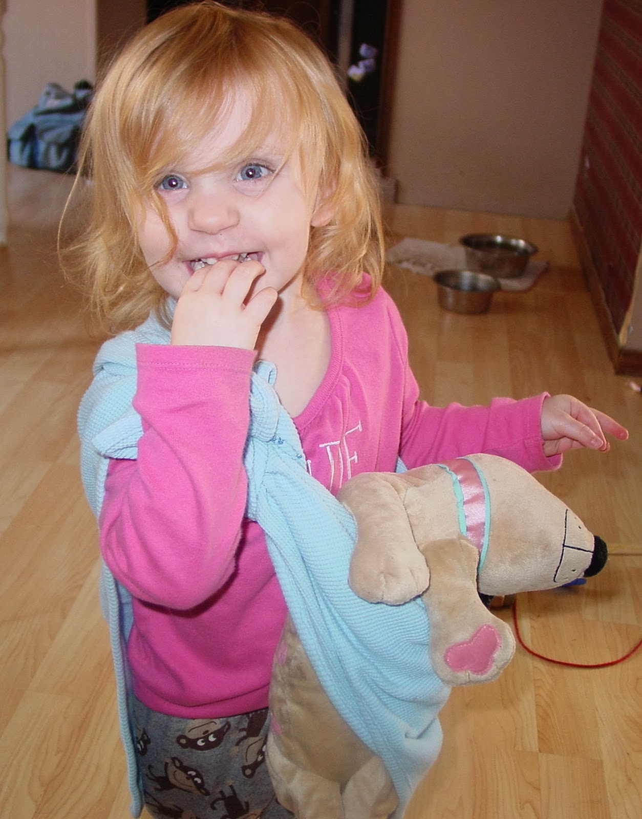 She wanted to carry around her dog like mama carries around the baby, in a carrier.